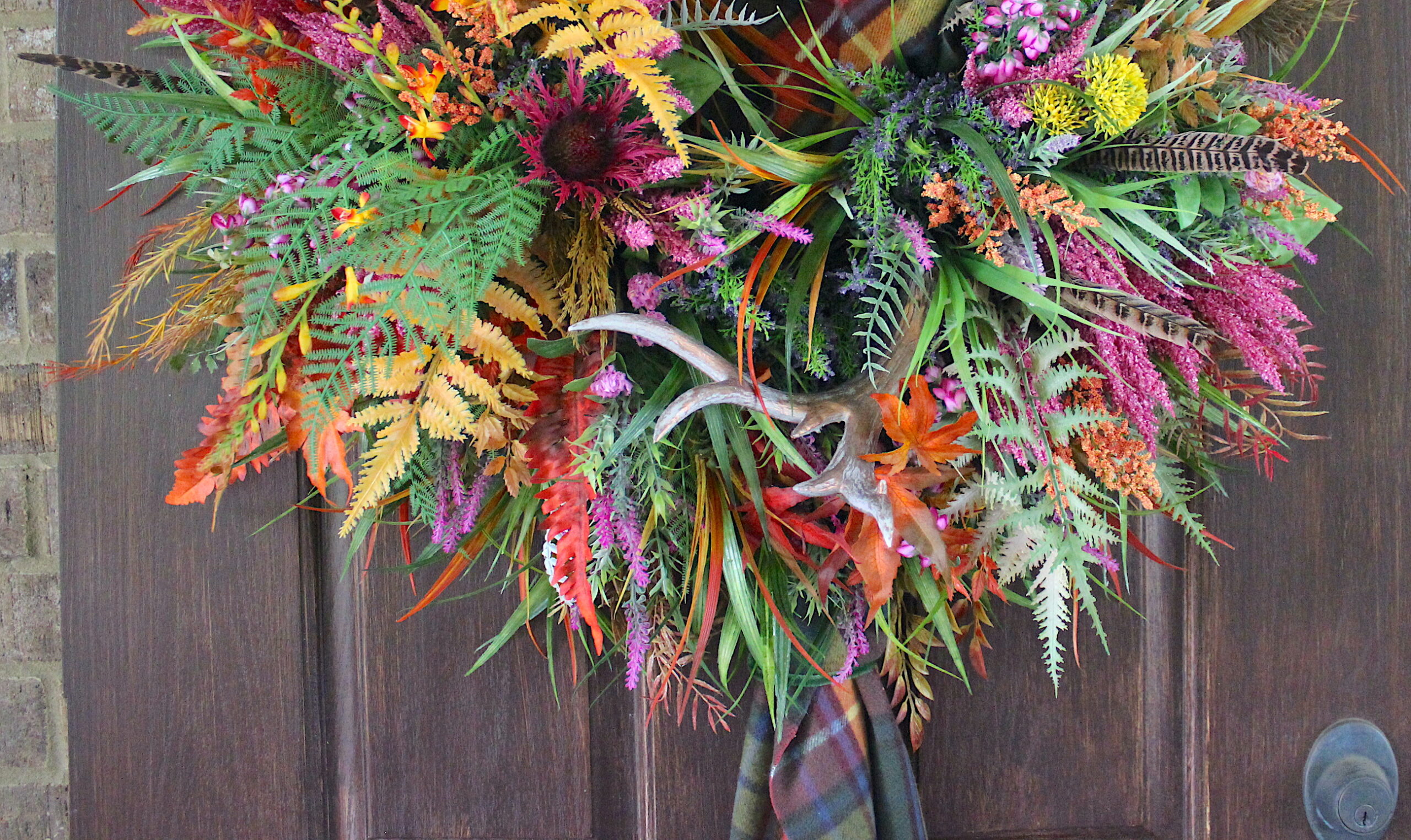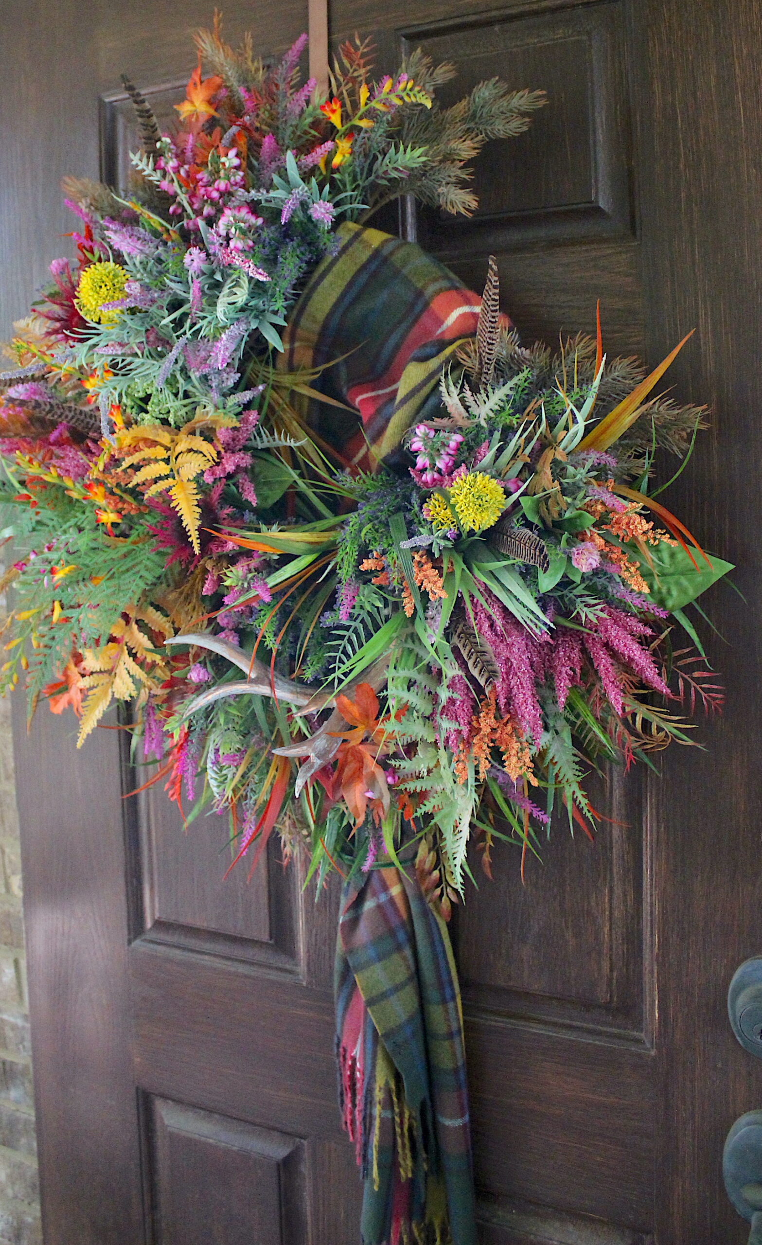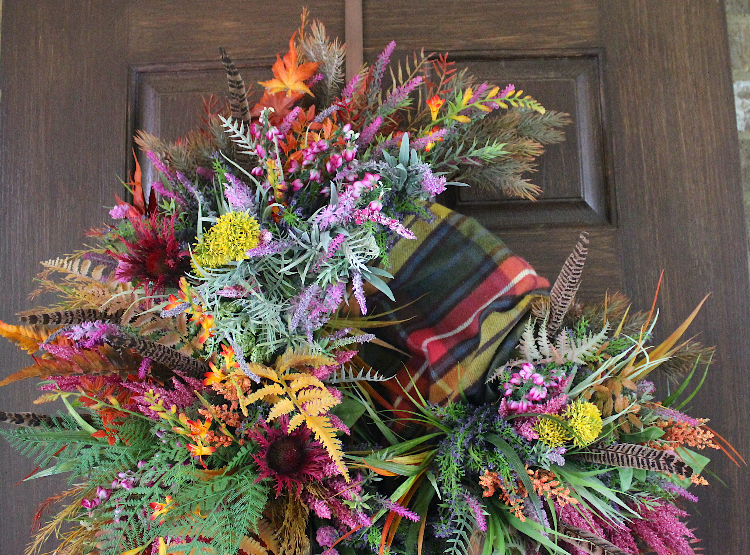 All of my Wreaths are made to fit a Standard Size Single 3ft Wide entrance door – and they are hung on the back of my own during the last phase of their creation to make CERTAIN that they fit properly.